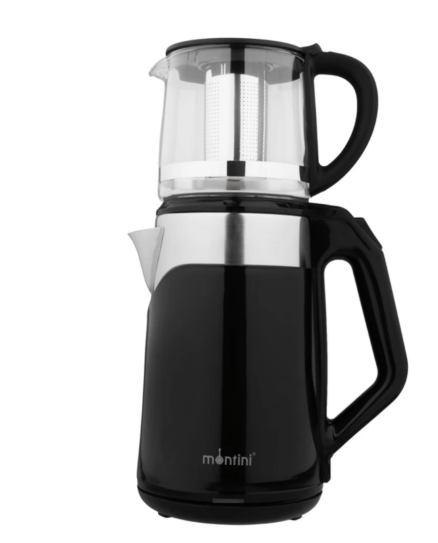 چای ساز مونتینی رنگ مشکی دارای کتری 2لیتری و قوری یک لیتری ضد زنگ قابلیت خاموش شدن خودکار بعداز جوش آمدن .کیفیت عالی ووبسیار زیبا،،و ظاهری زیبا